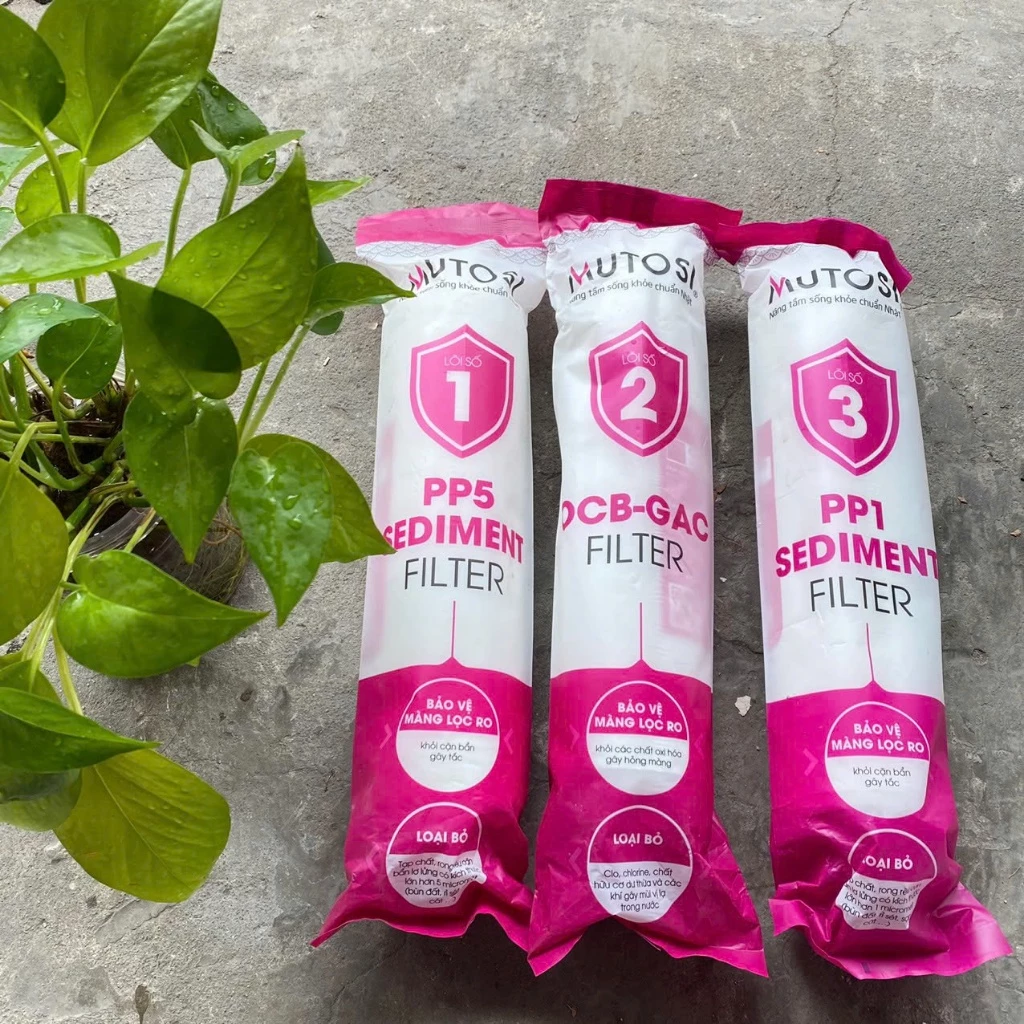 Bộ 123 Mutosi đúc là bộ 3 lõi lọc thô đúc nguyên khối gồm PP 5 micron, than hoạt tính CTO-GAC và PP 1 micron, giúp loại bỏ bùn đất, rỉ sét, cặn bẩn, clo dư, mùi hôi và vị lạ trong nước đầu vào. Sản phẩm hỗ trợ bảo vệ màng RO, giúp máy lọc nước vận hành ổn định hơn, kéo dài tuổi thọ hệ thống và phù hợp với nhiều dòng máy lọc nước RO gia đình chuẩn 10 inch.
