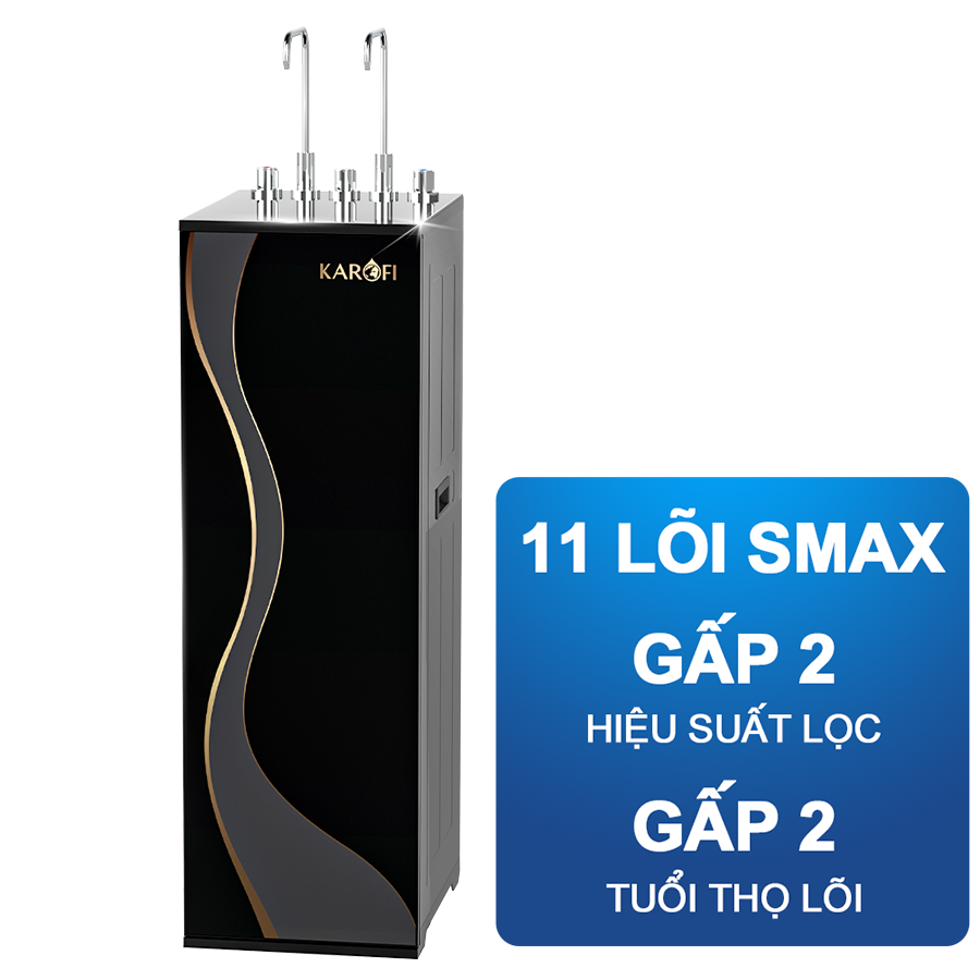 Máy lọc nước nóng lạnh Karofi KAD-D66S PRO được trang bị hệ thống 11 lõi lọc công nghệ SMAX độc quyền, giúp hiệu quả lọc tăng gấp đôi, tuổi thọ lõi cao hơn và nước đầu ra đạt chuẩn tinh khiết.
